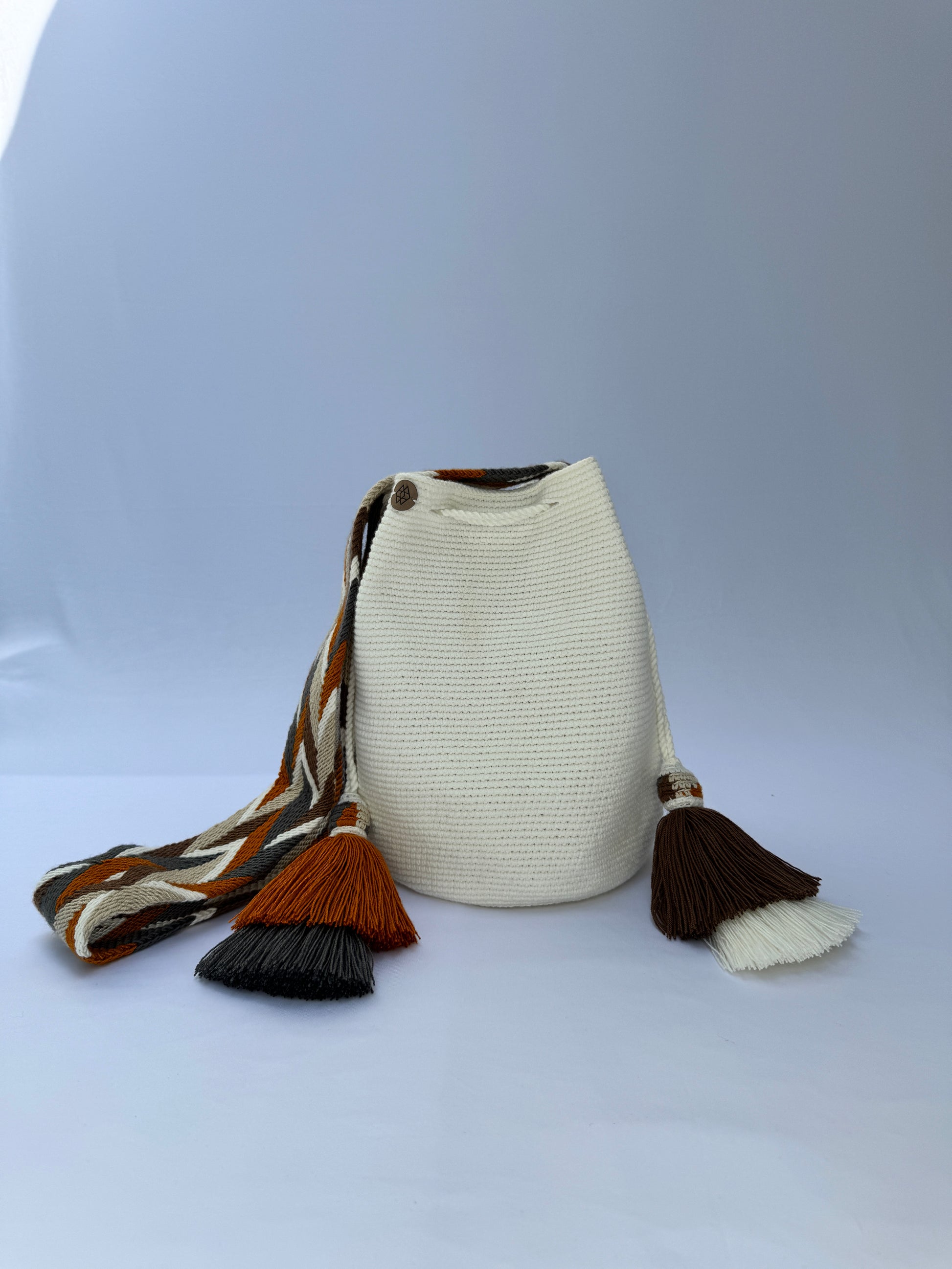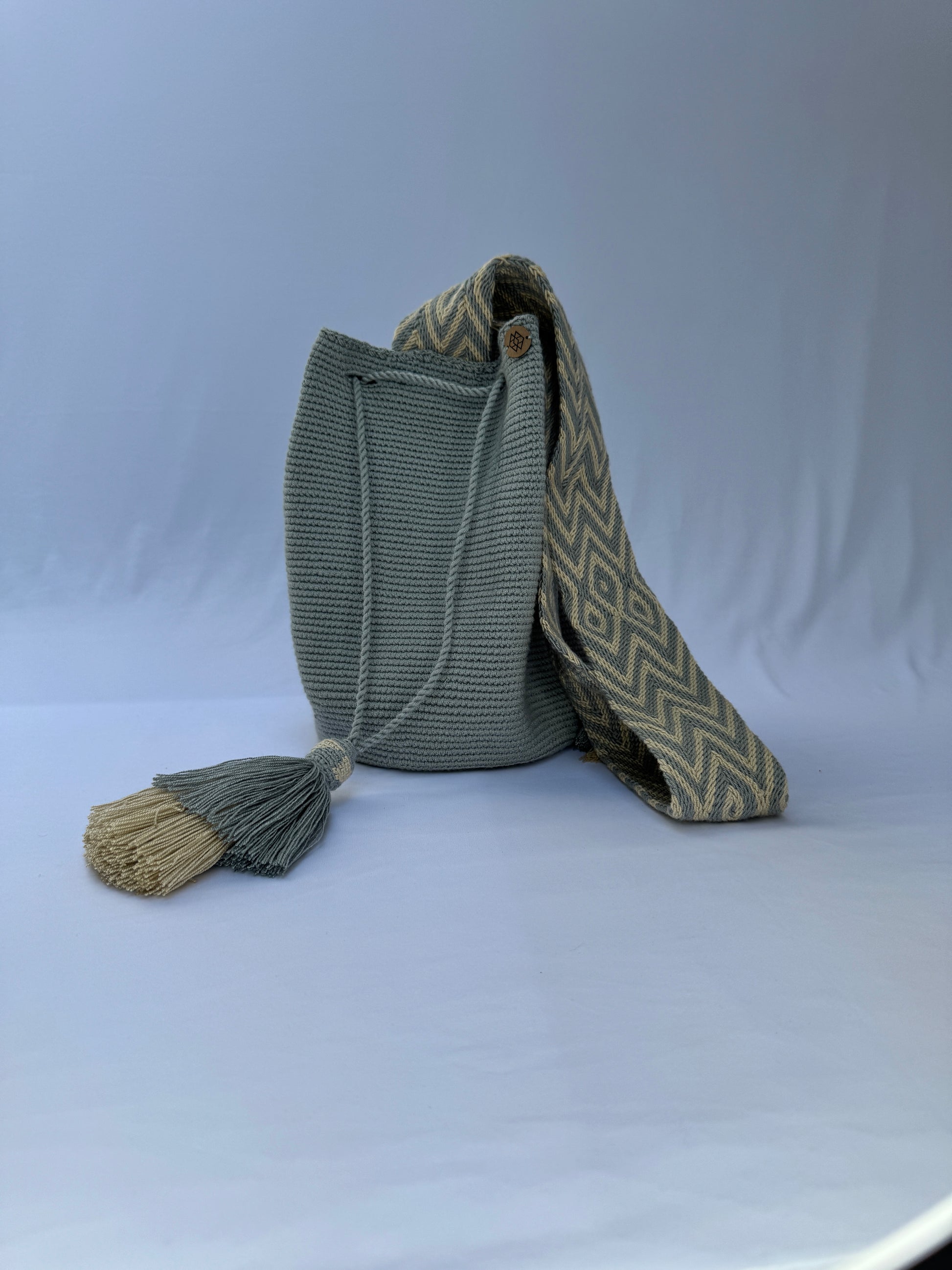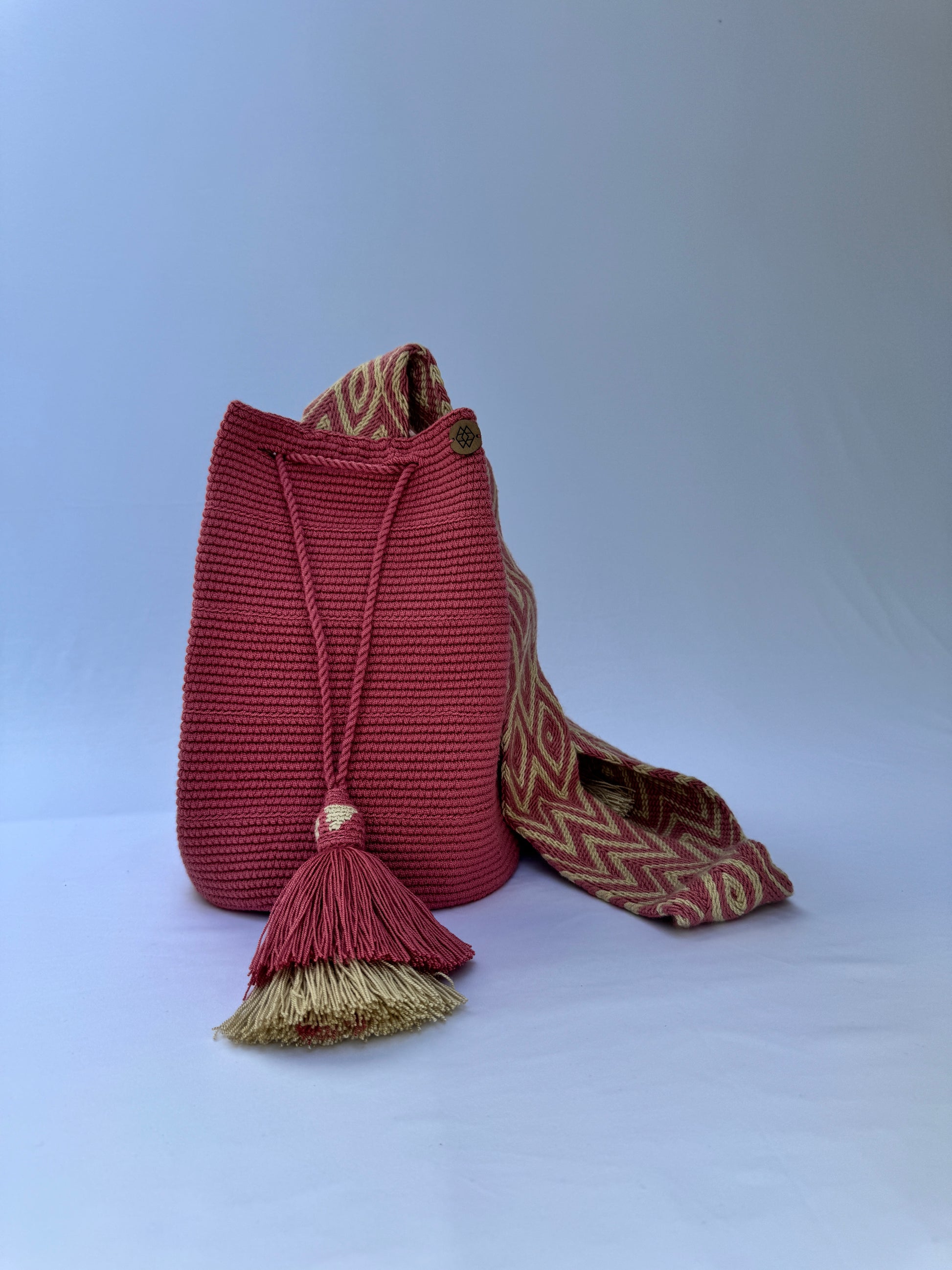 La Mochila es elaborada totalmente a mano por indígenas de la etnia Wayuu, el tiempo de manufactura tarda alrededor de 7-10 días.