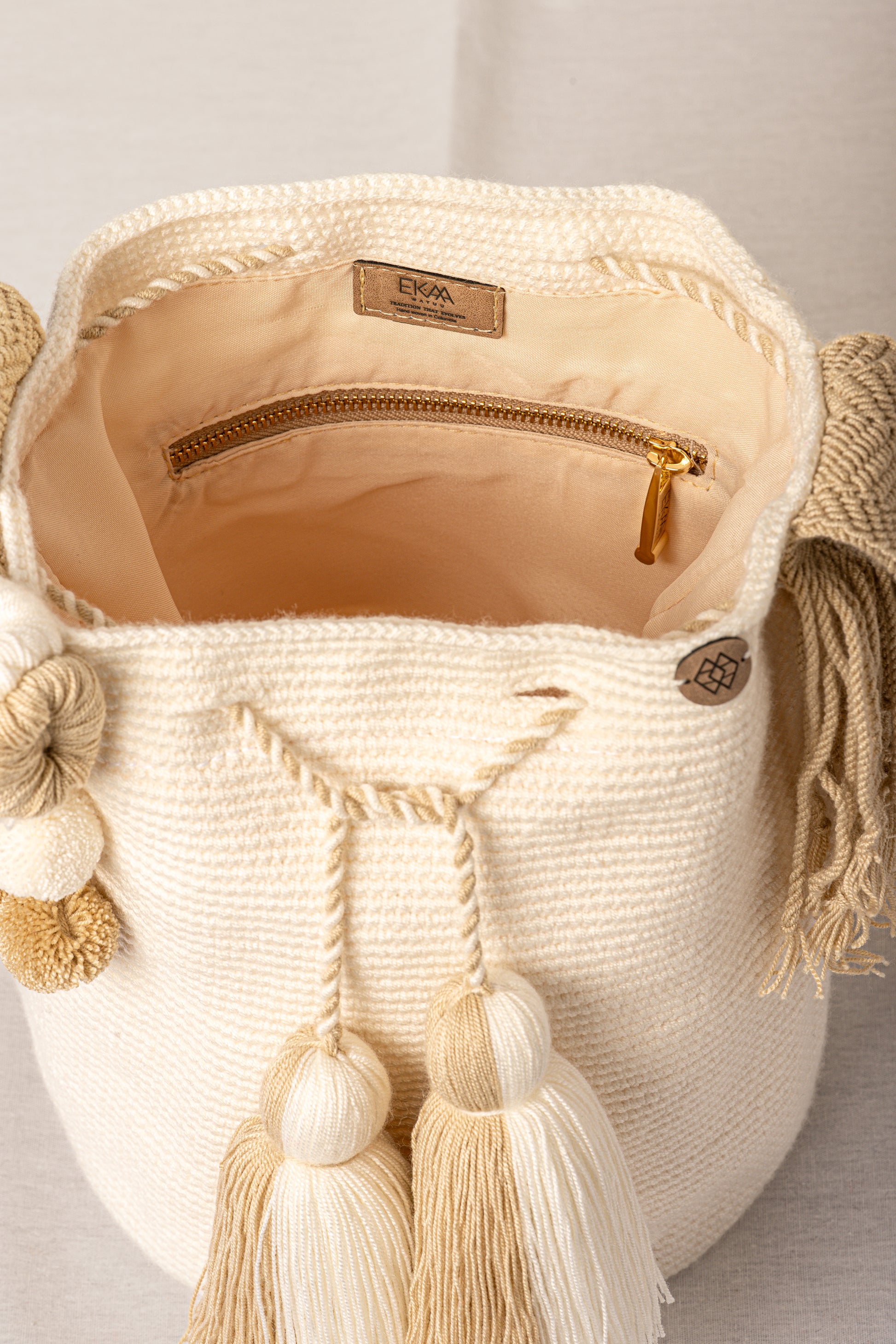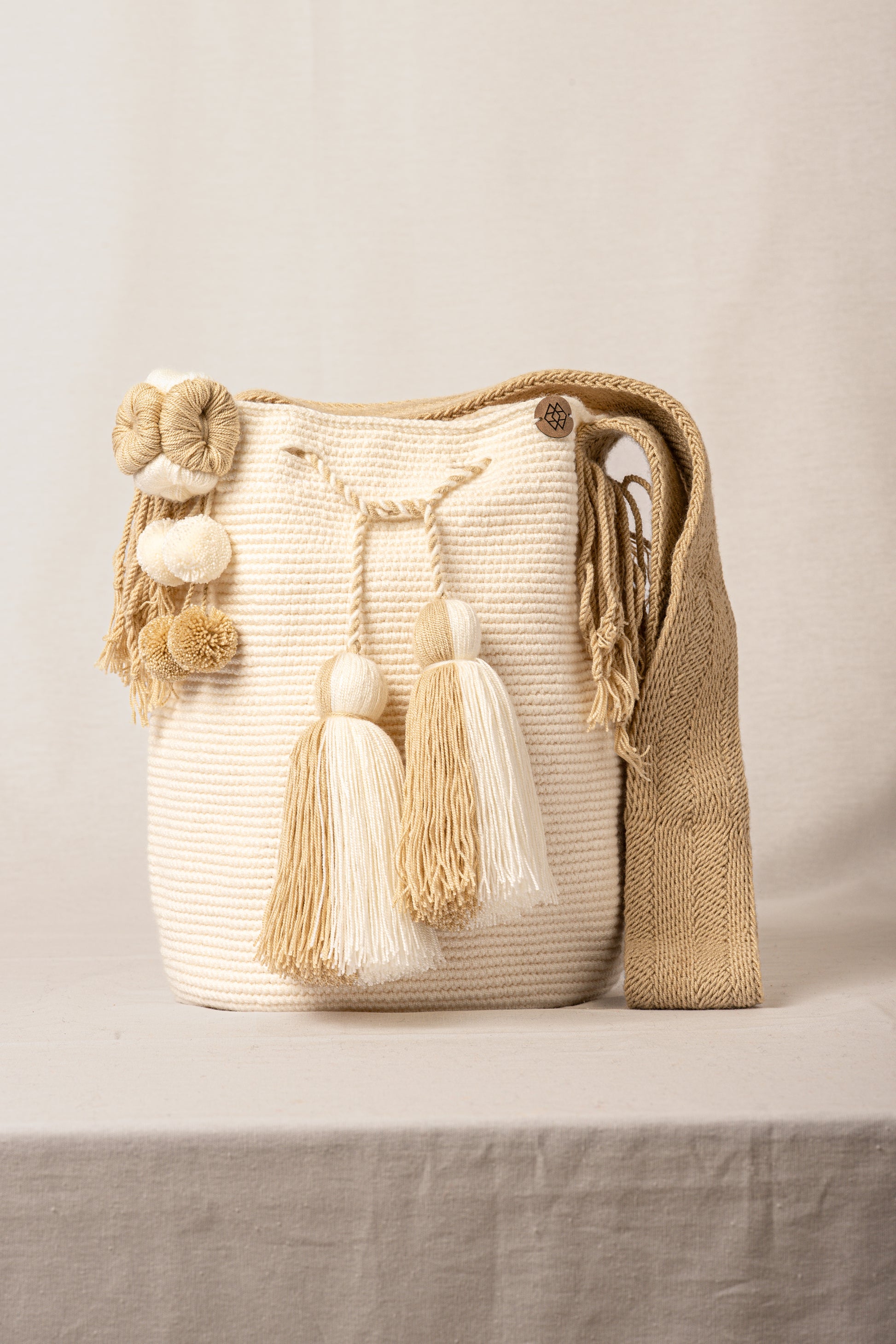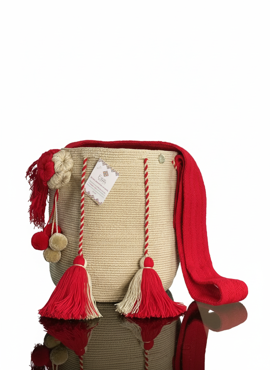 Mochila de un solo color, adornada con gaza multicolor que realza su belleza. puedes elegir la terminación del cordón, en borlas o campanas. Este diseño es elaborado totalmente a mano por indígenas de la etnia wayuu, el arte del tejido se ha transmitido de generación en generación, conservando su riqueza y calidad, el tiempo de manufactura tarda alrededor de 8-12 días. El material utilizado es hilo de algodón de crochet. Mediadas aproximadas: 28 CM X 28 CM cada mochila es única y hecha a mano, por lo tanto las medidas nunca son exactas.