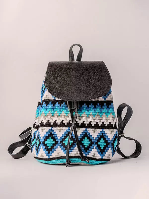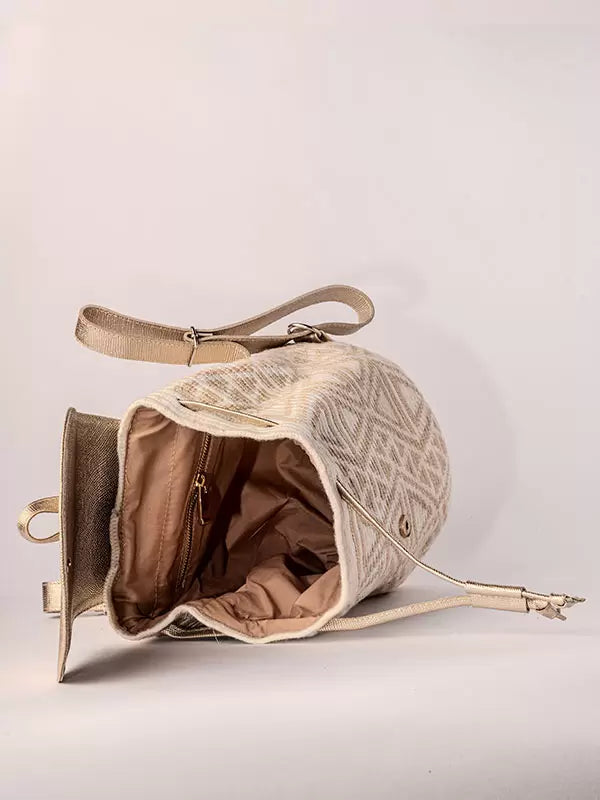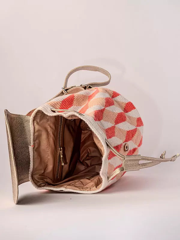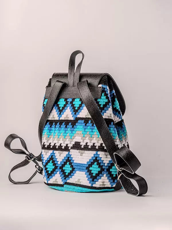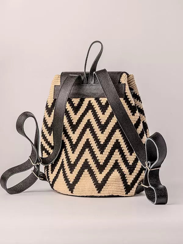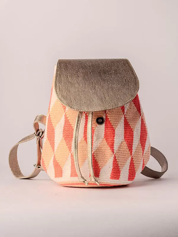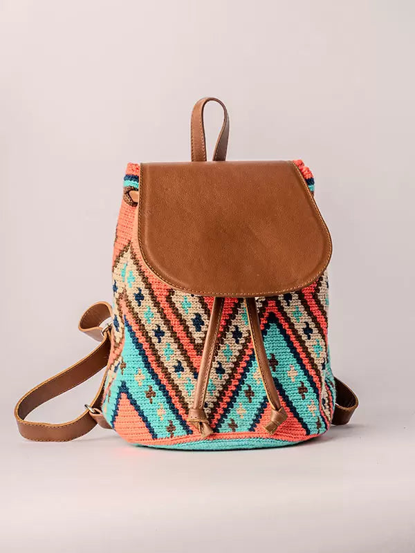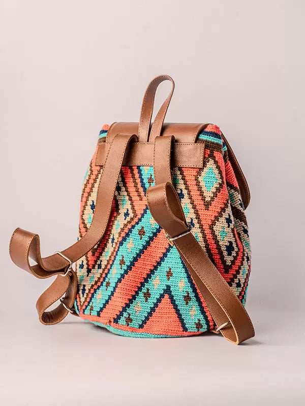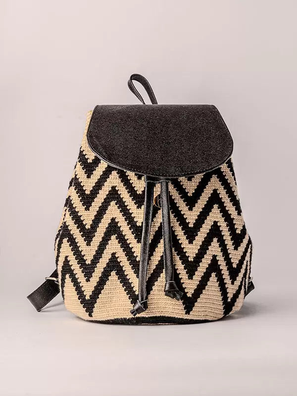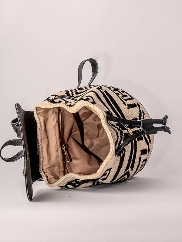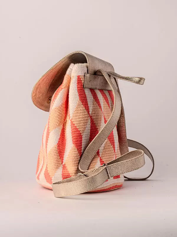 El morral Ekaa, ofrece un estilo moderno y versátil, con un toque cultura y ancestralidad, combina una base tejida a mano por indigencias wayuu desde el corazón de la Guajira con cuero auténtico de alta calidad utilizado para elaborar la tapa, las cargaderas y el lazo del cierre del bolso.