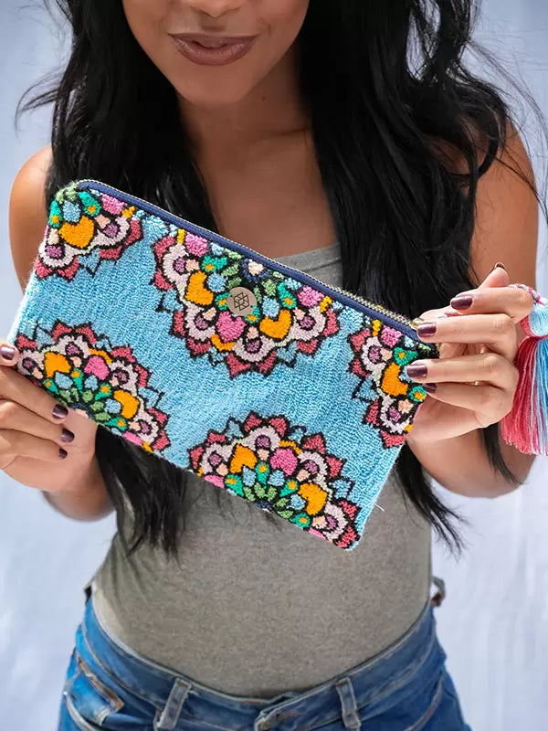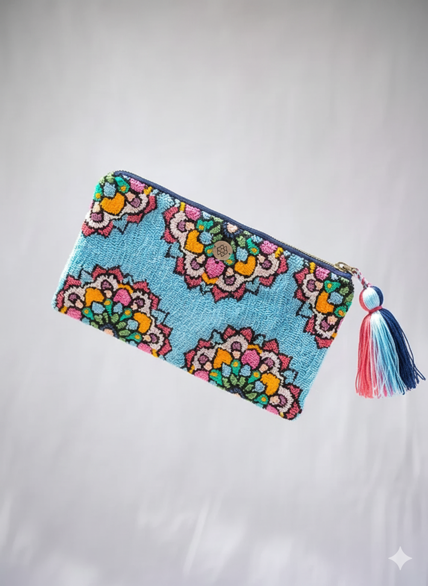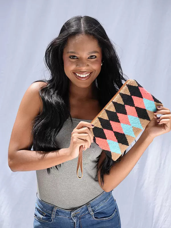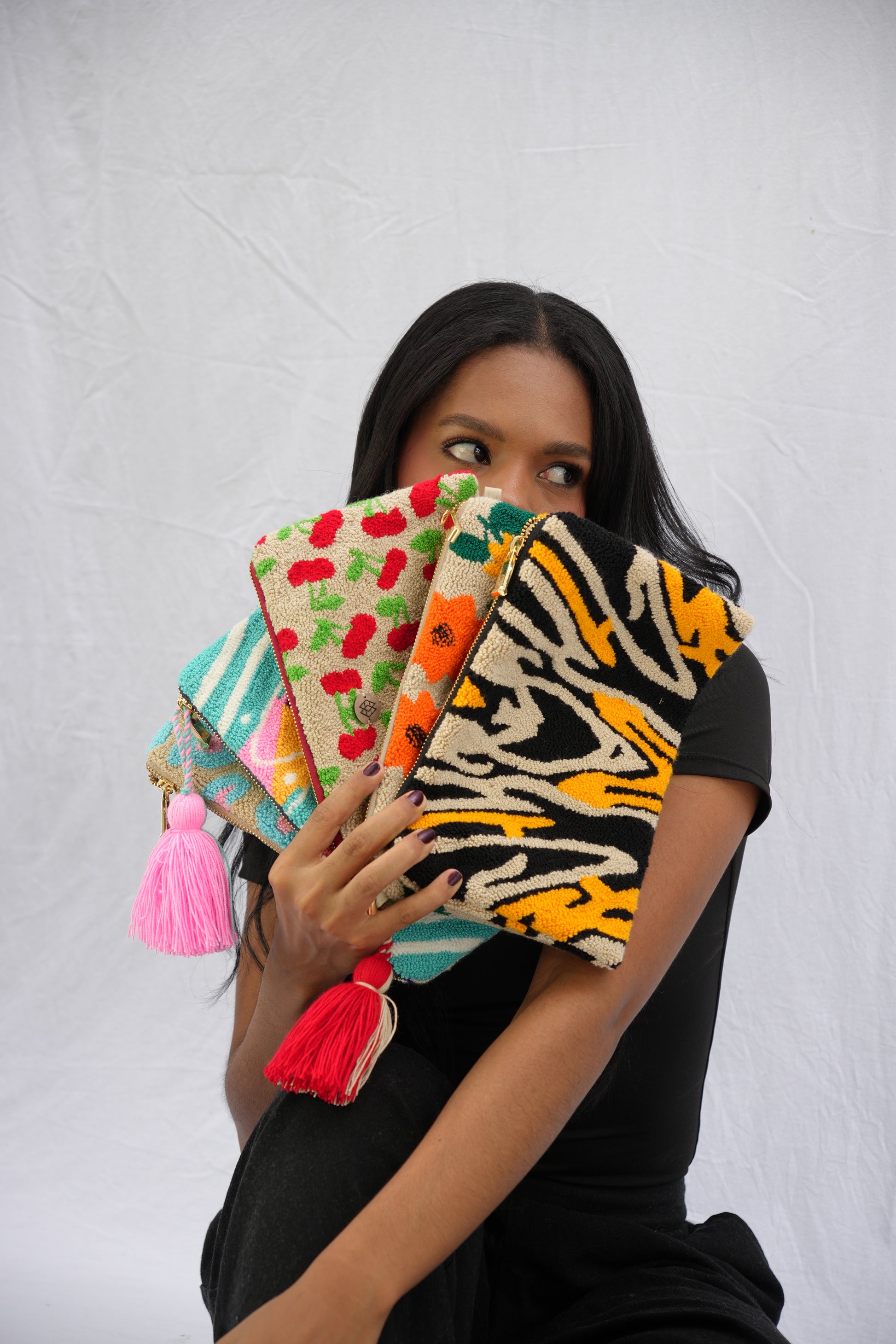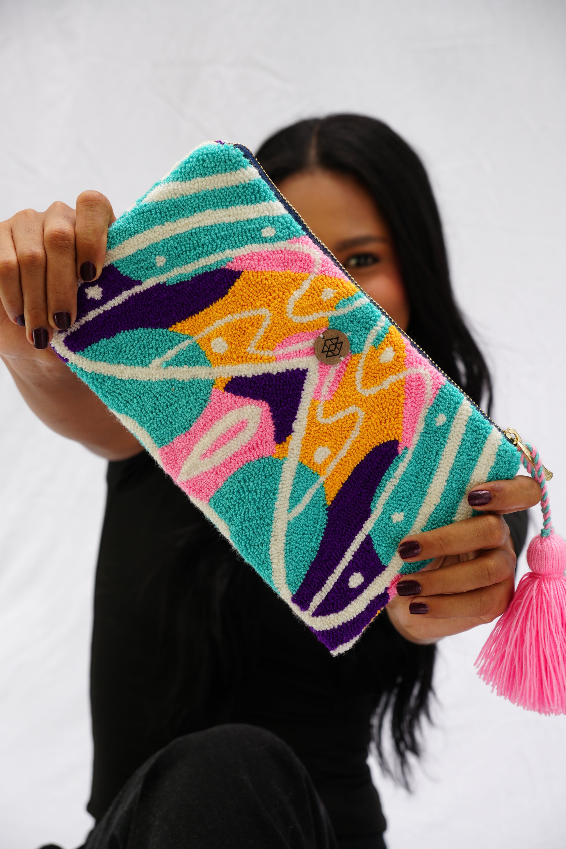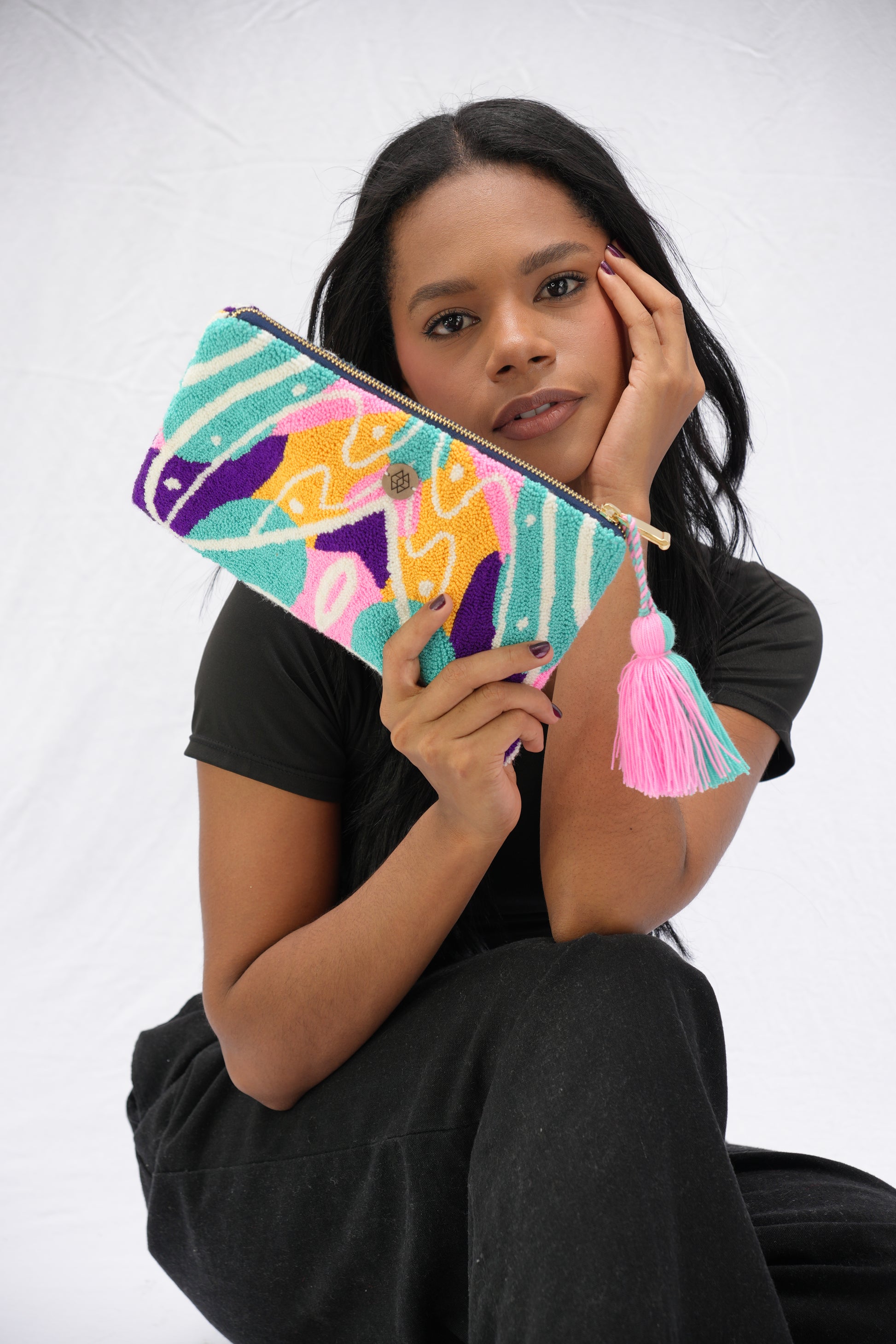 Sobres de mano también conocidos como Clutch con elaboración a mano por mujeres indígenas de la etnia wayuu con la técnica de tapizado.